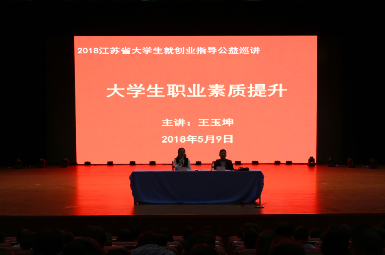 5月9日,由江苏省高校招生就业指导服务中心主办、我校学工处承办的“2018年江苏省大学生就业创业指导公益巡讲走进盐城工业职业技术学院”专场报告会在大学生活动中心举行。江苏省大学生就业创业指导专家、盐城师范学院招生就业处副处长王玉坤应邀作题为“大学生职业素质提升”的专题报告。我校700余名师生聆听了报告。报告会由学工处副处长孙干主持。