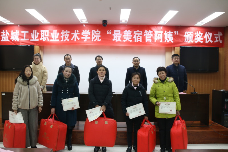 梁雅琪宣读了“最美宿管阿姨”称号名单,孙玲玲、夏明、潘伏巧、赵翠霞、赵素红等五位同志获得2019年度盐城工业职业技术学院“最美宿管阿姨”称号。与会老师为“最美宿管阿姨”颁发奖品及奖状。宿管阿姨代表赵翠霞、永恒物业公司项目经理周广琪依次发言,表示今后工作将更加负责认真,用优质的服务为同学们创造更好的宿舍环境。