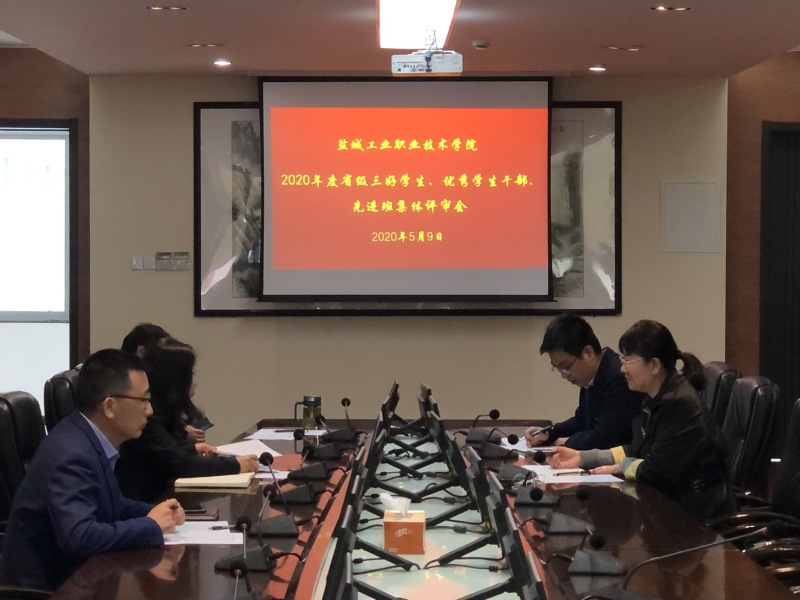 5月9日下午,2020年度省级“三好学生”、“优秀学生干部”、“先进班集体”评审会在图文信息中心第一会议室召开,学工处处长孙干、教务处处长李桂付、财务处处长周旭芳、校团委书记裴华尉、科研处副处长王曙东参加了本次评审。