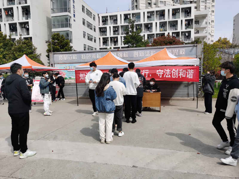 4月1日全天,学校在宿舍区举办“普及法制知识,弘扬法治精神,推进法治建设”为主题的普法宣传活动。
