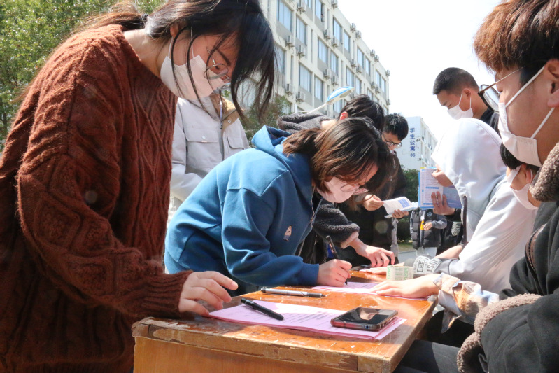 活动现场,普法宣传员向同学们发放宣传手册,并讲解普法知识,现场同学踊跃签订普法倡议书,并表示将认真学习法律知识、培养法律素养、践行法律法规,遵守学校疫情期间管理规定,为抗疫贡献自己一份力量。