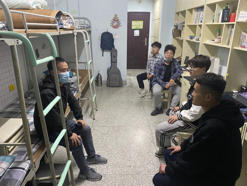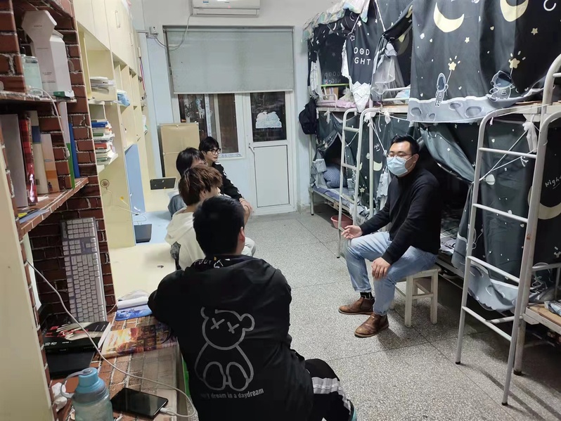4月13日,党委学生工作部全体教师利用晚上时间再次走进学生宿舍,和学生零距离谈心。学校疫情防控实施封闭管理以来,党委学生工作部部长孙干特别关注学生心理健康工作。在孙干的带领下,部门全体人员分别对接一栋宿舍楼,每晚访谈几个宿舍,深入了解学生思想、学习、心理和生活状况。宿舍谈心活动进一步落实和加强了疫情防控期间学生的心理健康教育工作,缓解学生因为疫情导致的焦虑情绪,引导学生以积极健康心态面对疫情,增强战胜疫情和困难的信心和决心。“宿舍谈心”是我校心理健康教育工作一个重要环节,据悉,疫情防控期间我校主要开展了三个方面的学生心理健康教育工作。